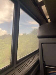Ab da lief zum Glück alles reibungslos. Ich war einfach nur froh, als ich endlich im Zug saß und etwas durchatmen konnte. Nachdem ich etwas zu runter kam, habe mit Jonas telefoniert und kurz darauf setzte sich eine ältere Dame zu mir. Sie weinte, also fragte ich, ob alles in Ordnung sei oder ob ich ihr helfen könne. Sie erzählte mir, dass sie zum ersten Mal in 63 Jahren mit dem Zug fährt und große Angst davor habe. Wir unterhielten uns eine Weile, und dann beruhigte sie sich zum Glück auch ein bisschen.