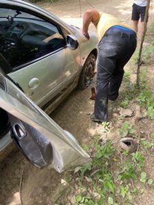 Auch das dauerte fast eine Stunde. Als es endlich weiterging, schafften wir ganze 10 Meter… dann ging der Motor erneut aus. Diesmal sprang der Wagen auch nicht mehr an.