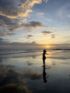Am Nachmittag hatte ich eine Surfstunde über mein Hostel. Am Anfang lief es eher holprig – ich bin ständig vom Board gefallen und habe gefühlt literweise Salzwasser geschluckt. Aber gegen Ende wurde es besser. An meiner Balance muss ich aber noch arbeiten. War anstrengend, aber hat auch echt Spaß gemacht.