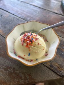 Seit ich in diesem Hostel war, hörte ich immer wieder, dass es ganz in der Nähe ein Café mit richtig guten Zimtschnecken geben soll. Die letzten Tage hatten ein paar andere aus dem Hostel dort leider kein Glück – keine Zimtschnecken. Heute wollten Lynn und ich es nochmal gemeinsam versuchen und gingen voller Hoffnung zum Café. Wegen des Stromausfalls gab es dort heute leider keinen Kaffee und… Zimtschnecken hatten sie leider auch heute nicht 🙁 Stattdessen gönnte ich mir ein Eis, das zwar schon leicht angeschmolzen war, aber trotzdem echt lecker schmeckte.