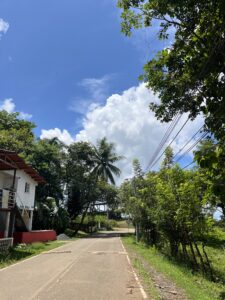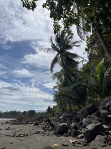 Der Strand war wirklich wunderschön: dunkler Sand, Palmen überall, und das Wasser war glasklar. Ich verbrachte den gesamten Vormittag dort, lag unter den Palmen, habe gelesen und sprang ab uns zu ins Meer.