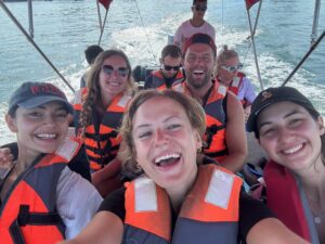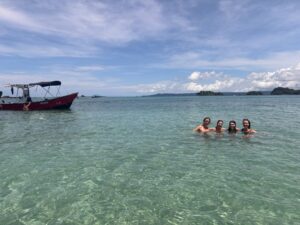 Nach etwa einer Stunde ging’s zurück aufs Boot und weiter zum Schnorcheln. Wir sahen noch mehr Schildkröten, einen Rochen und riesige Fische. Die Unterwasserwelt war wirklich beeindruckend! Zum Abschluss hielten wir an einem paradiesischen Strand, an dem wir baden konnten.