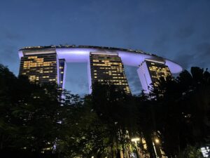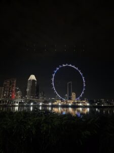 Danach schlenderte ich noch etwas durch den Park, bewunderte das Marina Bay Sands und entdeckte auf dem Weg zur U-Bahn sogar noch ein beleuchtetes Riesenrad.