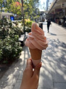 Zur Abkühlung gönnte ich mir ein Erdbeereis.