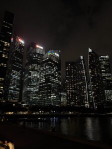 Nach dem Essen fuhr ich mit der U-Bahn zur Marina Bay, um mir die kostenlose Wasser- und Lichtershow anzusehen. Die hohen Gebäude drumherum bildeten eine beeindruckende Skyline, überall standen Palmen und alles wirkte extrem modern.
