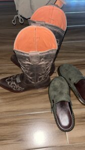 Am Nachmittag fuhren wir mit der Gondel wieder nach unten, wurden von unserem Fahrer eingesammelt und zurück ins Airbnb gebracht. Nach einer kurzen Pause machten wir uns fertig und fuhren in die Stadt, um unsere maßgeschneiderten Sachen abzuholen. Zuerst holten wir Jonas sein Hemd ab, das richtig gut aussah und perfekt passte. Danach ging es zu dem Schuster, bei dem ich mir zwei Paar Schuhe habe anfertigen lassen. Meine Cowboyboots und meine Slipper passten einfach perfekt. Die Cowboyboots sahen unglaublich cool aus und die feinen Stickereien waren toll verarbeitet – ich war richtig happy damit.