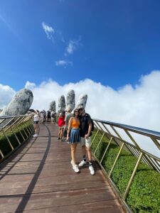 Heute organisierte Duc für uns einen Ausflug zu den Ba Na Hills, wo auch die berühmte Golden Bridge steht – die Brücke, die von riesigen steinernen Händen getragen wird. Ein Fahrer holte uns morgens um 8 Uhr direkt am Airbnb ab.