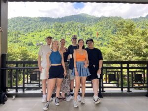 Unten am Eingang setzte uns der Fahrer ab, wir kauften unsere Tickets und machten erst einmal ein Gruppenfoto mit der Natur im Hintergrund.