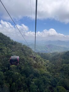 Es war eine richtig lange Fahrt mit atemberaubendem Ausblick. Zwischendurch fuhren wir durch dichten Nebel und die Gondel zog sich gefühlt ewig den Berg hinauf.