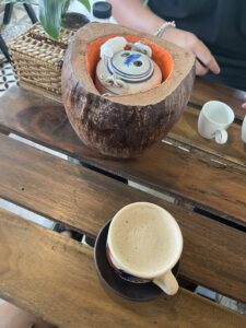 Der Tee von Duc wurde in einer Kokosnuss serviert, was total cool aussah.