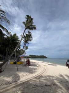 Der Strand sah zwar paradiesisch aus, wirkte aber auch ein wenig künstlich – als wäre der Sand aufgeschüttet worden. Ringsherum standen viele luxuriöse Resorts. Wir spazierten ein Stück am Meer entlang und die anderen sprangen ins Wasser, während Jonas und ich uns einen kleinen Kaffeestand suchten und dort gemütlich etwas tranken.
