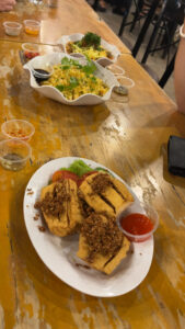 Beim Essen merkte man schnell, dass Ducs Tante das Kommando über die Bestellung übernahm. Hier in Vietnam werden meist mehrere Gerichte bestellt, die dann geteilt werden. Es gab verschiedene Fischgerichte, gebratenen Reis, Nudeln und Tofu – alles sehr lecker und am Ende waren wir alle pappsatt.