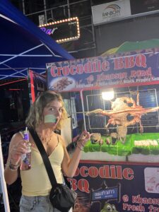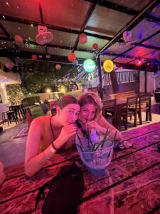 Beim Sprachkurs lernte ich, wie man auf Thai „Hallo“ und „Danke“ sagt: Sawadee kha und Khob Khun Ka. Danach startete das Quiz, wir wurden in Gruppen aufgeteilt und am Ende gewann tatsächlich unser Team! Der Preis war ein Eimer voller Alkohol, also setzten wir uns zusammen, tranken und quatschten.