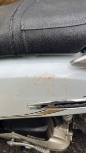 Ich schnappte mir meinen Roller und machte mich auf den Weg zur Bamboo Bridge. Was ich nicht wusste: Der Weg dorthin war richtig schlecht.. überall Schlaglöcher, Sand, Matsch und steile Anstiege. In einer engen Kurve war ich zu langsam und der Roller fiel ins Gras. Mir passierte zum Glück nichts, aber der Roller bekam ein paar kleine Kratzer. Eine Thailänderin half mir, ihn wieder aufzustellen 🙂 …ganz schön schwer, das Ding! Danach machte ich erstmal eine Pause.