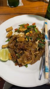 Später traf ich mich mit Ann-Sophie in der Stadt und wir gingen ein bisschen bummeln. Zurück im Hostel sprang ich unter die Dusche und danach spielten wir Karten. Abends gingen wir zu viert essen – unser letzter gemeinsamer Abend in dieser Konstellation. Für mich gab es gebratene Nudeln mit Gemüse und Tofu.