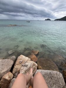 Irgendwann bekam ich ein wenig hunger und beschloss, runter zum Meer zu laufen, da ich dort einige Stände gesehen hatte. Ich entschied mich für einen Banane-Erdnussbutter-Smoothie und setzte mich damit an den Strand.
