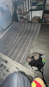 Ich war wieder im The Yard Hostel – wie schon in Chiang Mai, weil es mir dort so gut gefallen hatte. Zum Einchecken war ich natürlich viel zu früh, aber der Mitarbeiter zeigte mir den Aufenthaltsraum, wo ich meine Sachen abstellen und entspannen konnte. Er meinte auch, dass es ab 8 Uhr kostenlos Frühstück gebe. Der Raum war gemütlich, mit Matten auf dem Boden, also legte ich mich kurz hin, um etwas zu schlafen. Neben mir saß eine Frau, die Fernsehen schaute und ich setzte meine Ohrenstöpsel und Schlafmaske auf – kaum lag ich, war ich auch schon eingeschlafen.
