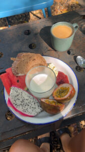 Nach etwa anderthalb Stunden wachte ich wieder auf, putzte meine Zähne, machte mich frisch und frühstückte dann: frisches Obst, Brot, Joghurt und Kaffee – wie auch im anderen The Yard einfach richtig lecker.