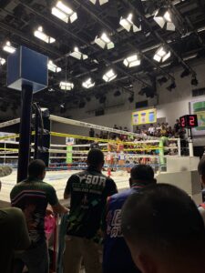 Die beiden Kämpfer waren noch recht jung, und der Kampf war überraschend respektvoll – weniger aggressiv, als ich gedacht hatte. In jeder Pause wurden die Kämpfer von ihren Trainern massiert und mit Eiswasser abgekühlt. Es war wirklich faszinierend, das live zu sehen.