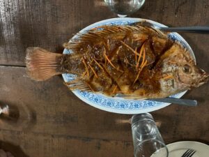Wir hielten kurz an, um Fotos zu machen und uns den Staudamm anzuschauen, bevor es weiterging zu einer Tropfsteinhöhle. Dort sind wir kurz durchgelaufen – angeblich gibt’s dort auch Spinnen, aber zum Glück hab ich keine gesehen :D. Dafür hab ich mir natürlich trotzdem den Kopf gestoßen, obwohl sie uns extra gesagt hatten, wir sollen aufpassen.