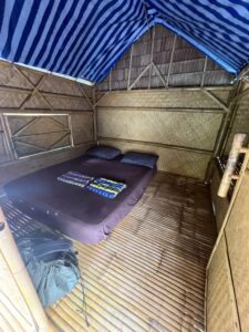 Später haben Lukas, der Amerikaner Jack und ich noch Karten gespielt, bevor ich Zähne geputzt und mich in meine Hütte verzogen habe. Auf dem Weg meinte mein Nachbar noch, er hätte Ameisen in seiner Hütte… Ich hab dann in meine Hütte geleuchtet und da war tatsächlich eine Kakerlake auf meiner Matratze 🙁 Zum Glück nicht riesig, aber eklig genug. Ich hab versucht, sie mit meinem Sudoku-Heft rauszuschieben, was natürlich nicht geklappt hat. Lukas wollte helfen – und erzählte mir dann, dass er eine doppelt so große Kakerlake in seiner Hütte hat. Wir haben sie beide nicht rausbekommen, also hab ich meine kurzerhand „Heribert“ getauft und als Mitbewohner akzeptiert.