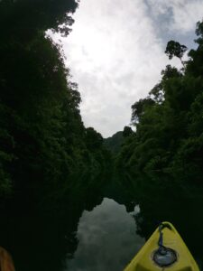 Zuerst sind wir ein Stück gefahren und hatten dann etwa 20 Minuten Zeit, um Snacks, Wasser oder eine wasserfeste Handyhülle zu kaufen. Dann ging’s weiter zur Bootsanlegestelle. Dort mussten wir erst den Eintritt für den Nationalpark bezahlen und dann ging’s aufs Boot.