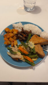 Um 19 Uhr gab es Abendessen: ein kleines Buffet mit einigen vegetarischen Optionen.