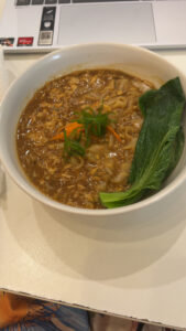 Nach dem Duschen hab ich mit meiner Mama telefoniert. Wir haben ein bisschen was für unsere Reise nach Australien geplant, vor allem für Sydney und schon mal nach passenden Hostels geschaut. Danach bin ich losgegangen, um etwas zu essen. Ich landete in einem modernen Café, in dem es auch Mittagessen gab. Ich bestellte mir ein Nudelgericht und einen Matcha – leider war das Essen sehr knoblauchlastig und ich bin echt kein großer Fan davon, aber es war trotzdem ganz okay.