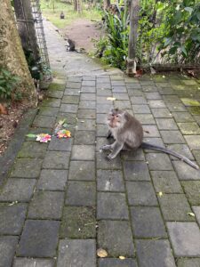 Irgendwann ging es mir besser und ich beschloss, zum Monkey Park zu laufen – einem bekannten Park, in dem man viele Affen sehen kann. Schon auf dem Weg dorthin begegneten mir überall Affen, die auf der Straße nach Essen in Müllsäcken suchten.