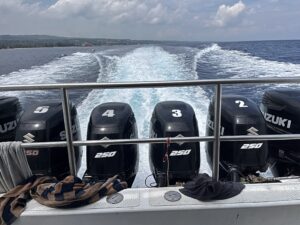 Dann ging es auf die Fähre, die überraschend leer war. Ich hatte eine komplette Sitzreihe für mich allein und konnte mich sogar hinlegen. Zum Glück wackelte es nicht allzu stark, sodass ich weiter lesen konnte – ich war richtig gefesselt von meinem Buch. In der Fähre lief allerdings die Klimaanlage auf gefühlt 18 Grad herunter, sodass mir extrem kalt wurde. Zum Glück hatte ich einen Pulli dabei. Wir machten Zwischenstopps bei den Gili-Inseln und nach knapp drei Stunden Fahrt kamen wir schließlich auf Lombok an.